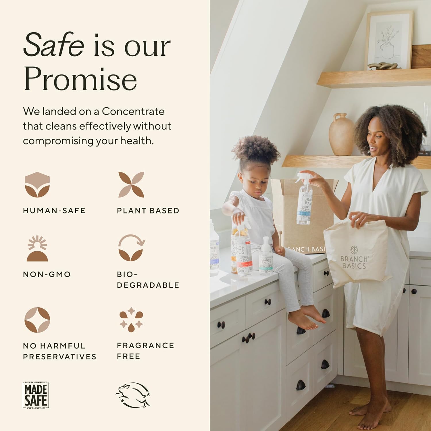 • REUSE & REFILL FOR SUSTAINABLE CLEANING: Keep your cleaning routine sustainable by refilling the Branch Basics cleaning bottles (sold separately) with Concentrate! Simply add water and Concentrate to create more cleaning solutions, reducing waste while maintaining a safe and effective home environment. One bottle of Concentrate can create multiple cleaning products at different dilution ratios, making it a sustianable and cost-effective way to maintain your cleaning routine.
