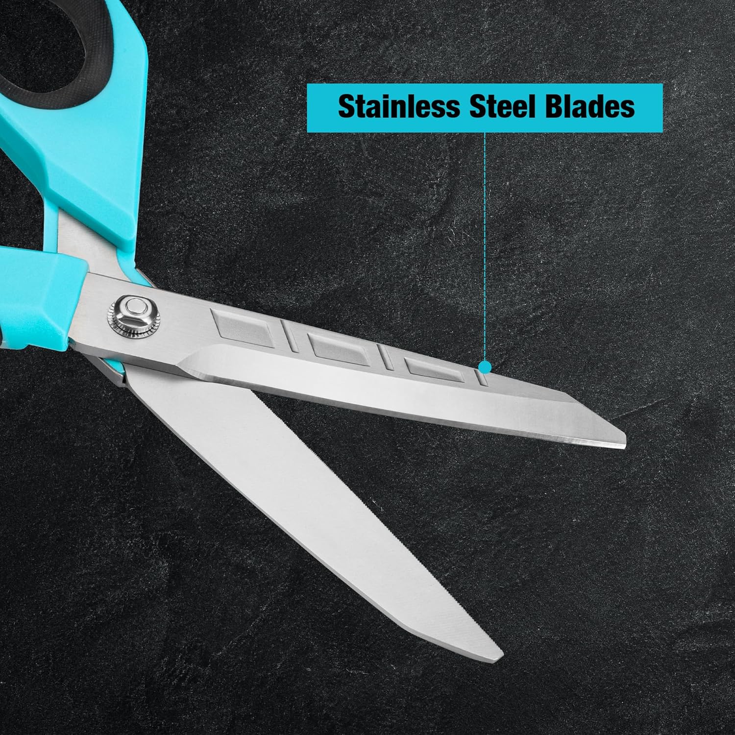 • Serrated Blade: The lower blade is finely serrated to grip materials securely, reducing slippage and making these all-purpose heavy-duty scissors more effective on slick or tough surfaces like fabric, plastic, and rope