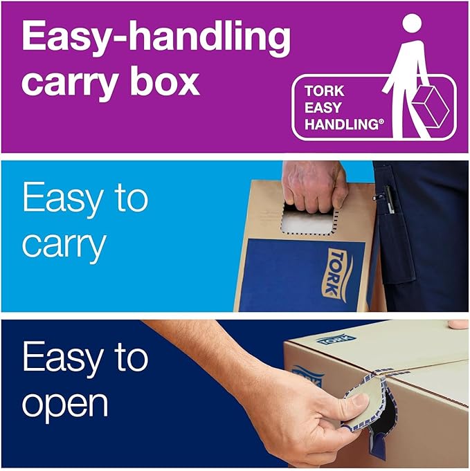 • Don't struggle with transport and storage—Tork Easy Handling packaging simplifies opening, transport, and disposal.