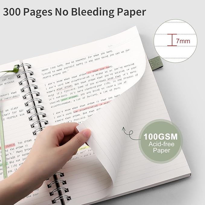 • 300 Pages Thick Notebook: EMSHOI college ruled notebook offers 300 pages (150 sheets) in A5 size (5.7" x 8.22"). Each features 7mm spacing, providing ample writing space, and consolidating all notes in one place