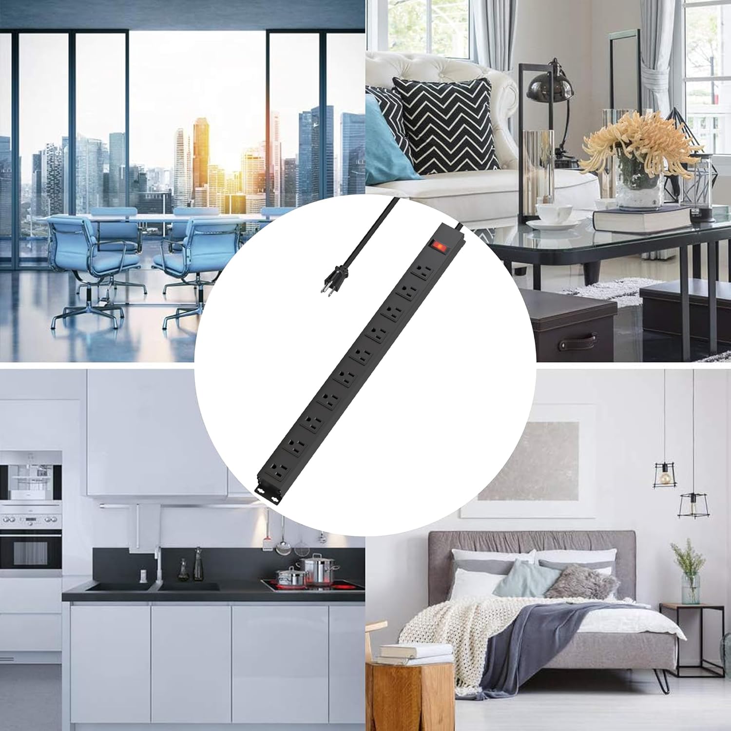 • ✅MULTIPLE OUTLETS:Heavy duty metal power strip with different wide spaced AC outlets.15A/125V/1825W/60Hz Ideal for use with a wide range of adapters. Comes with 4 additional screw mounting holes for mounting in any desired location.