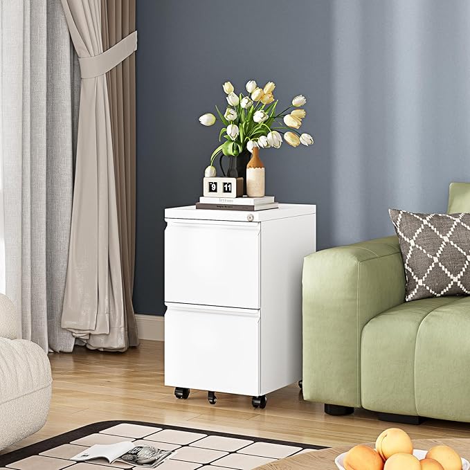 • ✅➤【LOCK AND ANTI-TILT DESIGN FOR HIGHT SECURITY 】: The sturdy file cabinet comes with 2 keys to lock up the top and bottom drawers. And the small wheel in the front that keeps the cabinet from tipping. The rear casters can be moved around and locked. Easy to move around and enough space for your files and keep important Files. Home files fit well in this stable and movable 2-drawer file.