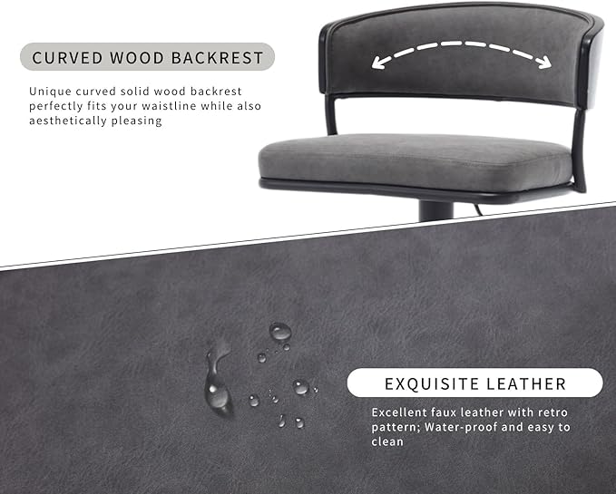• 🍺 [Easy to Assemble]- Our grey leather bar stools are equipped with installation instructions, quality hardware and installation tools, super easy to install. No need to worry if you are not good at DIY projects!