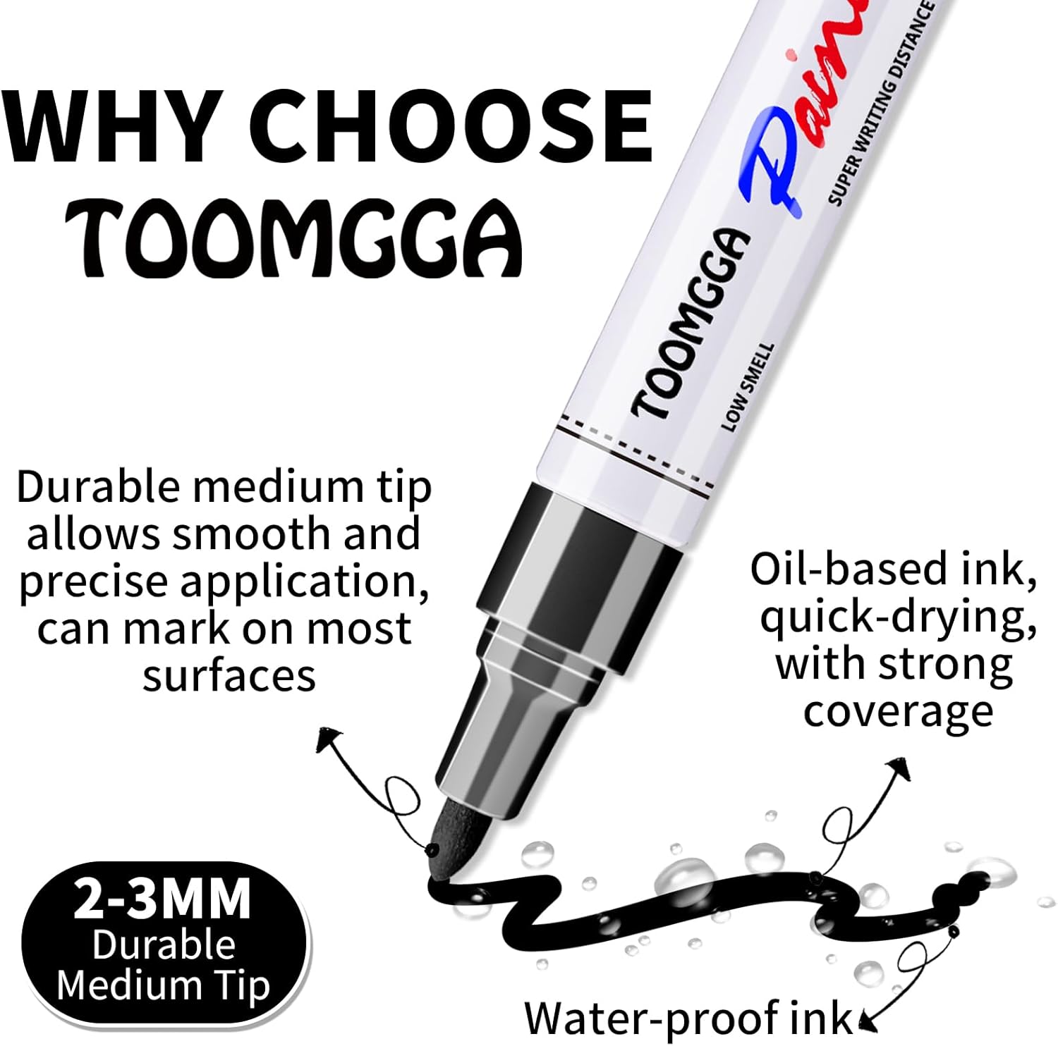• Premium Quality: Each black paint pens paint markers is independently tested, selected, and packaged in individual heat shrink film. Before use: Face tip upright,push against finger. Re-cap and shake. Press tip on surface several times