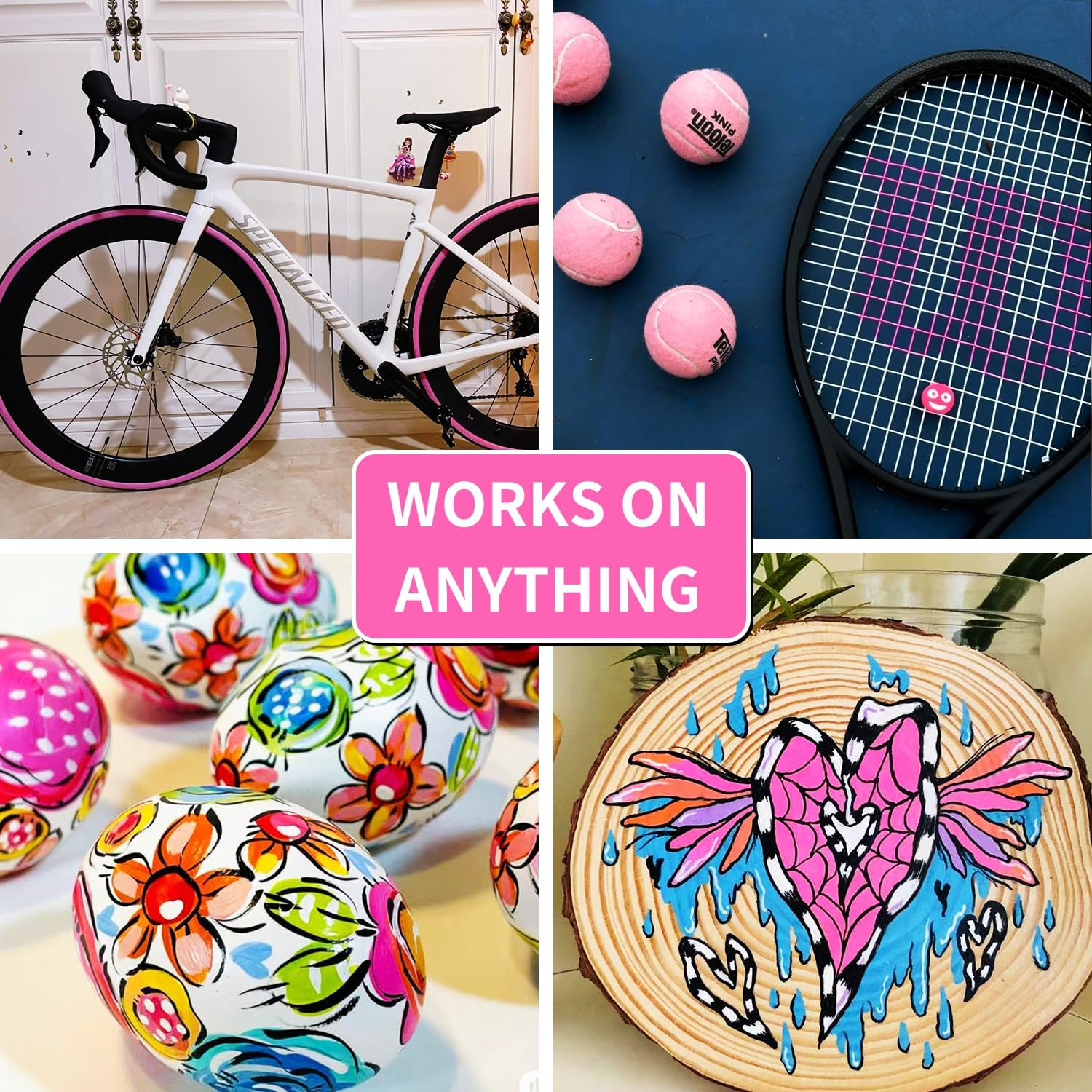 • Extensive Use: Paint pens mark steel and mark objects such as tires, bolts, metal pipes, bumper panels and more. Not just metal, pink permanent markers can be used on rocks,wood, ceramic, canvas, tires, rubber, glass and plastic surfaces