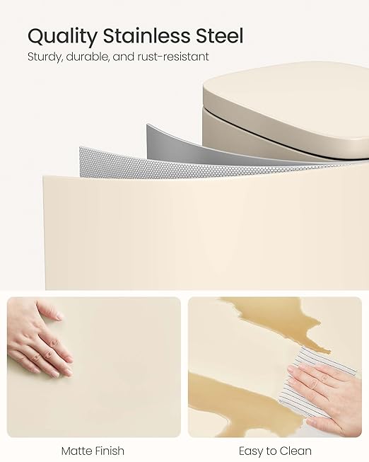 • [Quality Stainless Steel] Stainless steel construction makes this garbage can rust and fingerprint resistant. A simple wipe with a damp cloth keeps it clean and smudge free