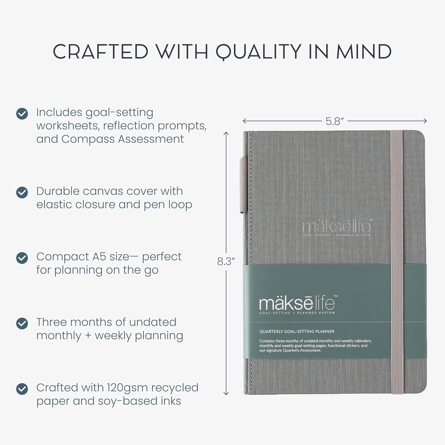 • Integrated quarterly design: The MäksēLife goal setting planner combines tracking, planning, and reflection in one package, streamlining personal development through its quarterly planner layout