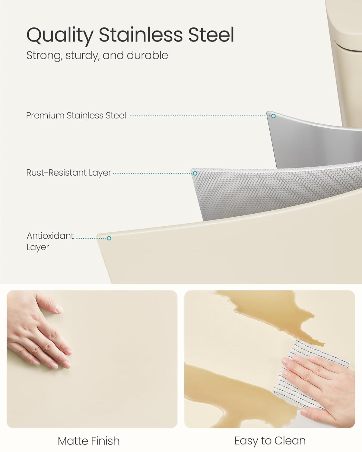 SONGMICS 13 Gallon (50 L) Trash Can, Stainless Steel Kitchen Garbage Can, Recycling or Waste Bin, Soft Close, Step-On Pedal, Removable Inner Bucket, Sand Beige ULTB050A01