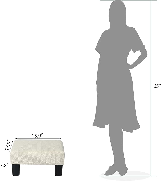 • Compact & Convenient Size: Measuring 15.7” x 15.7” x 8”, this small ottoman foot rest is designed for tight spaces, perfect for use under your desk or as a foot rest for chair. Its lightweight design makes it easy to move, ensuring it fits wherever you need it—whether as a small foot stool or as part of your living room setup.