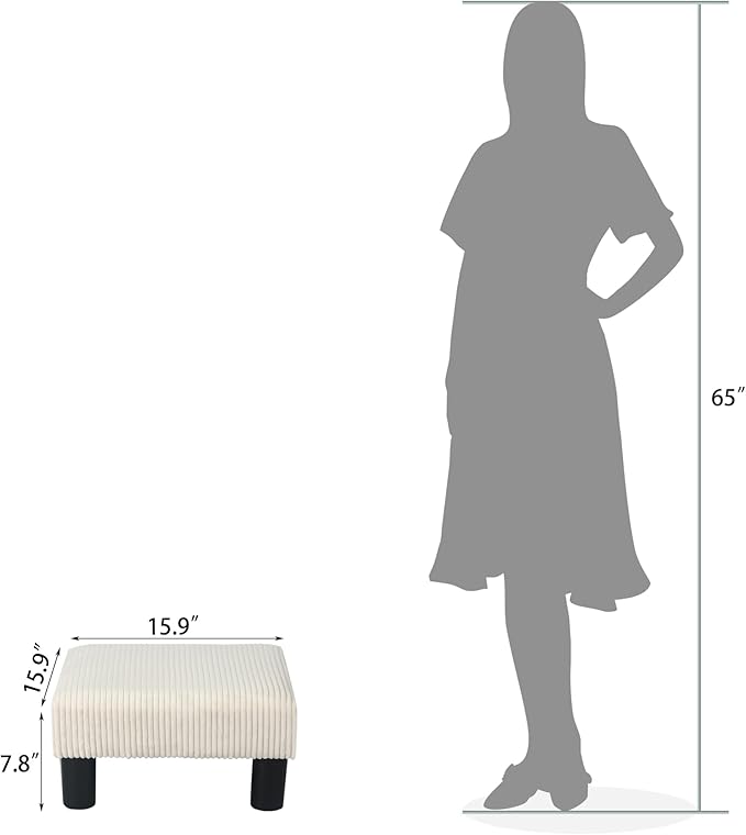 • Compact & Convenient Size: Measuring 15.7” x 15.7” x 8”, this small ottoman foot rest is designed for tight spaces, perfect for use under your desk or as a foot rest for chair. Its lightweight design makes it easy to move, ensuring it fits wherever you need it—whether as a small foot stool or as part of your living room setup.