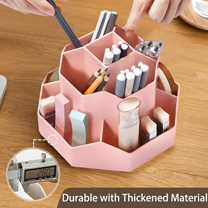 • 【360 Degree Revolving Design】This pen organizer for desk can be turned up to 360-degree rotation. It spins smoothly all around without getting stuck. Easy to access, easy to get from any angle, always keep your desk tidy and organized.