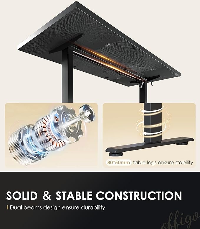• Sturdy Construction: The sit stand desk features an industrial-grade steel frame that ensures excellent durability while supporting more weight. The dual beam structure design and 80*50mm table legs has better stability, making the lifting more smooth
