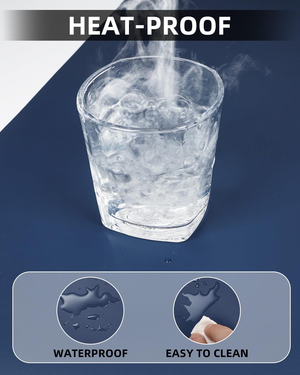 Non-Slip Desk mat,PULeather Desk Pad Protector, Office Desk Mat, Large Mouse Pad,Desk Blotter, Laptop Desk Pad, Waterproof Desk Writing Pad for Office and Home (Midnight Blue, 35.4" x 17")