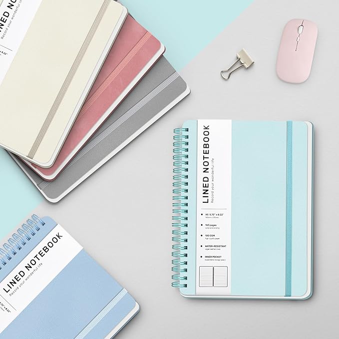 • 160 Pages A5 Notebook - This medium 5.7 x 8.2 inches A5 lined journal notebook features a waterproof pink faux leather cover, 8mm space classic college ruled notebook, total of 160 pages. The professional durable water-resistant plastic hard cover will protect your notebooks, which have oil-resistant and anti-bending properties, effectively protecting the internal paper of the journal and providing a comfortable writing surface.