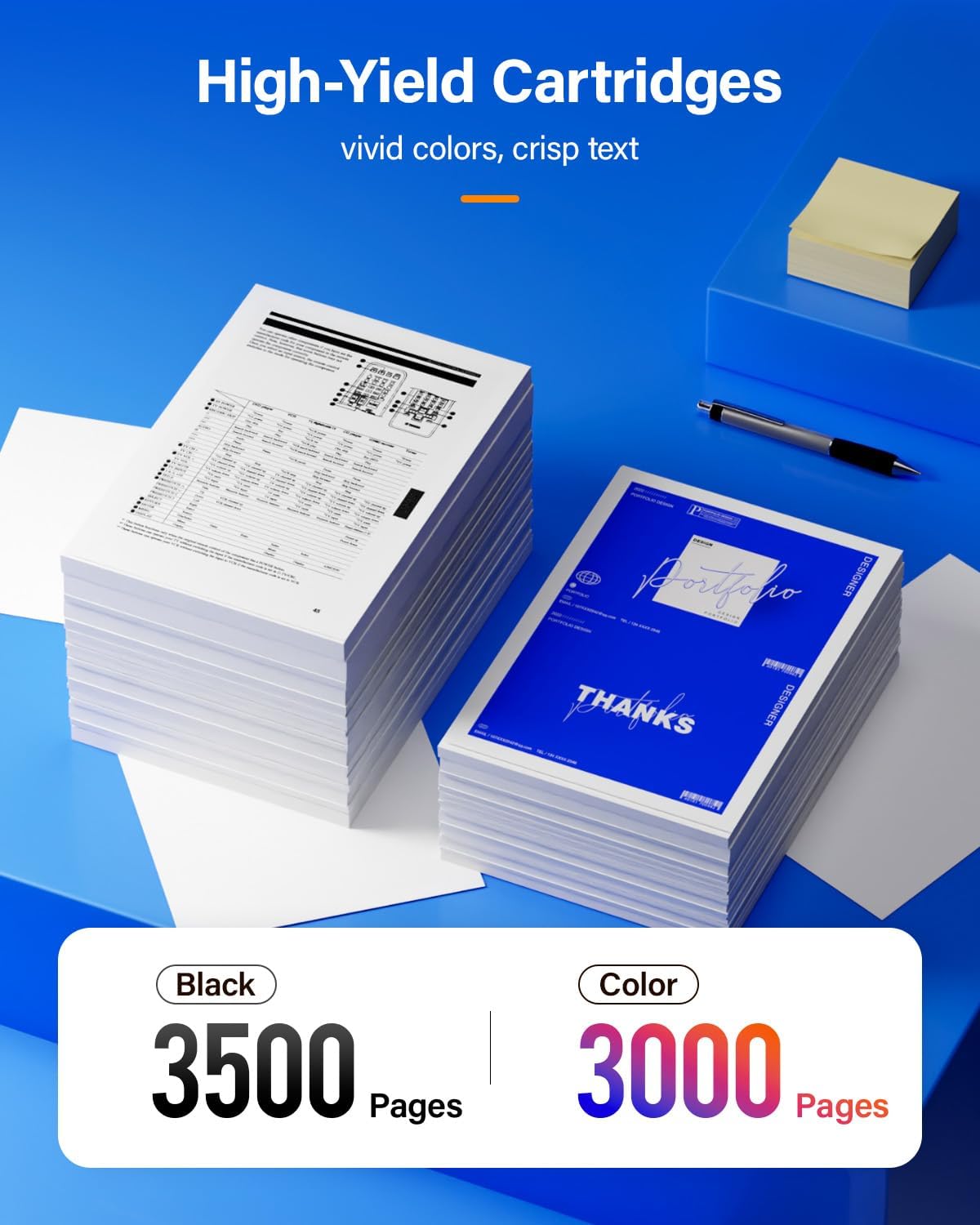 • 【Page Yield】Up to Black is 3,500 pages per black cartridge and Color is 3,000 Pages per color cartridge (Letter/A4, at 5% Coverage).