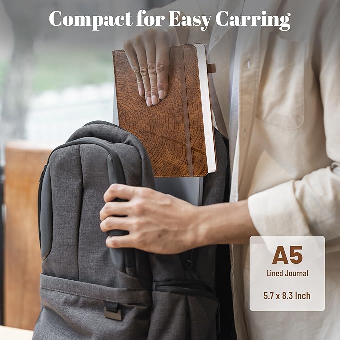 CAGIE Lined Journal for Men Women, Tree Growth Ring Leather Bound Journal Notebook, 256 Pages 100 GSM Journals for Writing, A5 Hardcover Journaling Notebooks for Work, Note Taking