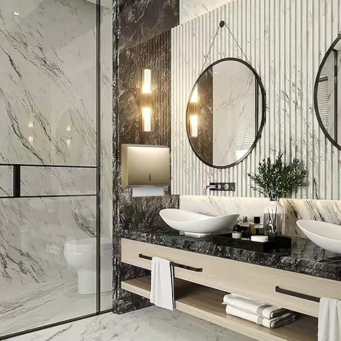 • 【Brushed Stainless Steel】 Made of 304-grade stainless steel, the paper towel dispenser is durable, easy to clean, and rust-proof. The brushed finish process gives it a sleek, modern look that will instantly elevate any bathroom. The polished edges and corners ensure that both hands and tissues are protected from any scratches.