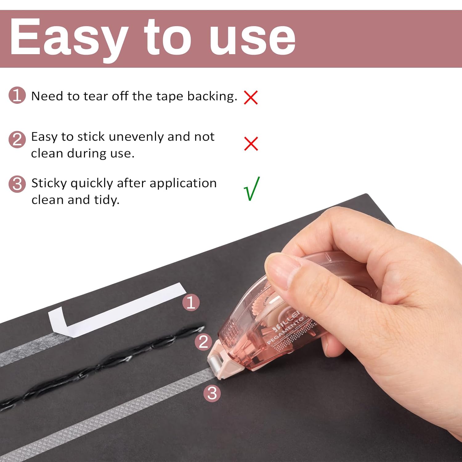• Clean and Neat: Unlike ordinary double-sided tape or liquid tape, the adhesive roller is more convenient to use, press and pull, fast and clean, with no wrinkles. You don't have to wait for the glue to dry. It only takes a few seconds to get the job done