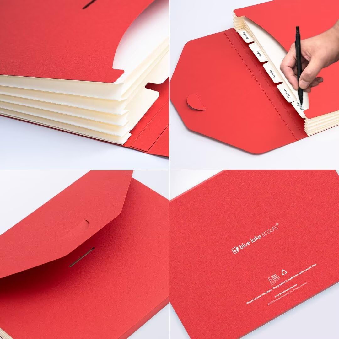 Blue Lake ECOLIFE Expandable Folders Plastic Free Accordion File Folder Organizer 6 Pocket Fiery Red