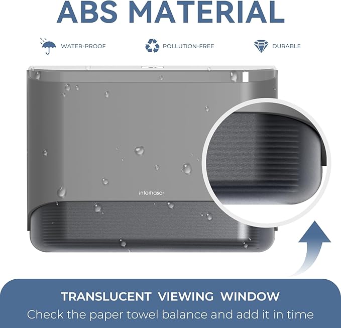 • 【SLEEK PAPER DISPENSER】This sleek bathroom paper towel dispenser is made of high impact ABS material. Designed with smooth surface and round edges for easy daily maintenance and prevent hands hurting.