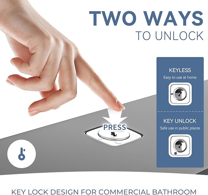 • 【TWO LOCKING DESIGN】 This wall mounted paper towel holder can be pressed to unlock, suitable for home kitchen or bathroom. It can also be locked with a key, suitable for commercial public places.