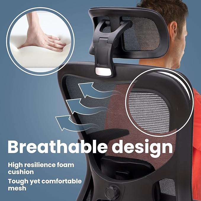 • 【Function and Design】Ergonomic design helps the backrest has prominent lumbar support to help you maintain a relaxed posture during long hours of work or study, comfortable mesh with back support points can fit the natural curvature of the spine