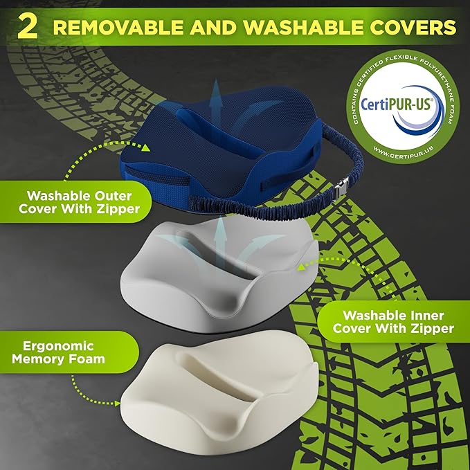 • ๐Ÿงตใ€๐“๐จ๐ฎ๐ ๐ก ๐„๐ง๐จ๐ฎ๐ ๐ก ๐Ÿ๐จ๐ซ ๐‹๐จ๐ง๐  ๐’๐ญ๐ซ๐ž๐ญ๐œ๐ก๐ž๐ฌใ€‘- Truck driver seat cushion includes 2 removable & washable covers, non-skid base, and adjustable straps for a secure fit. Crafted to withstand wear & tear of long hauls.