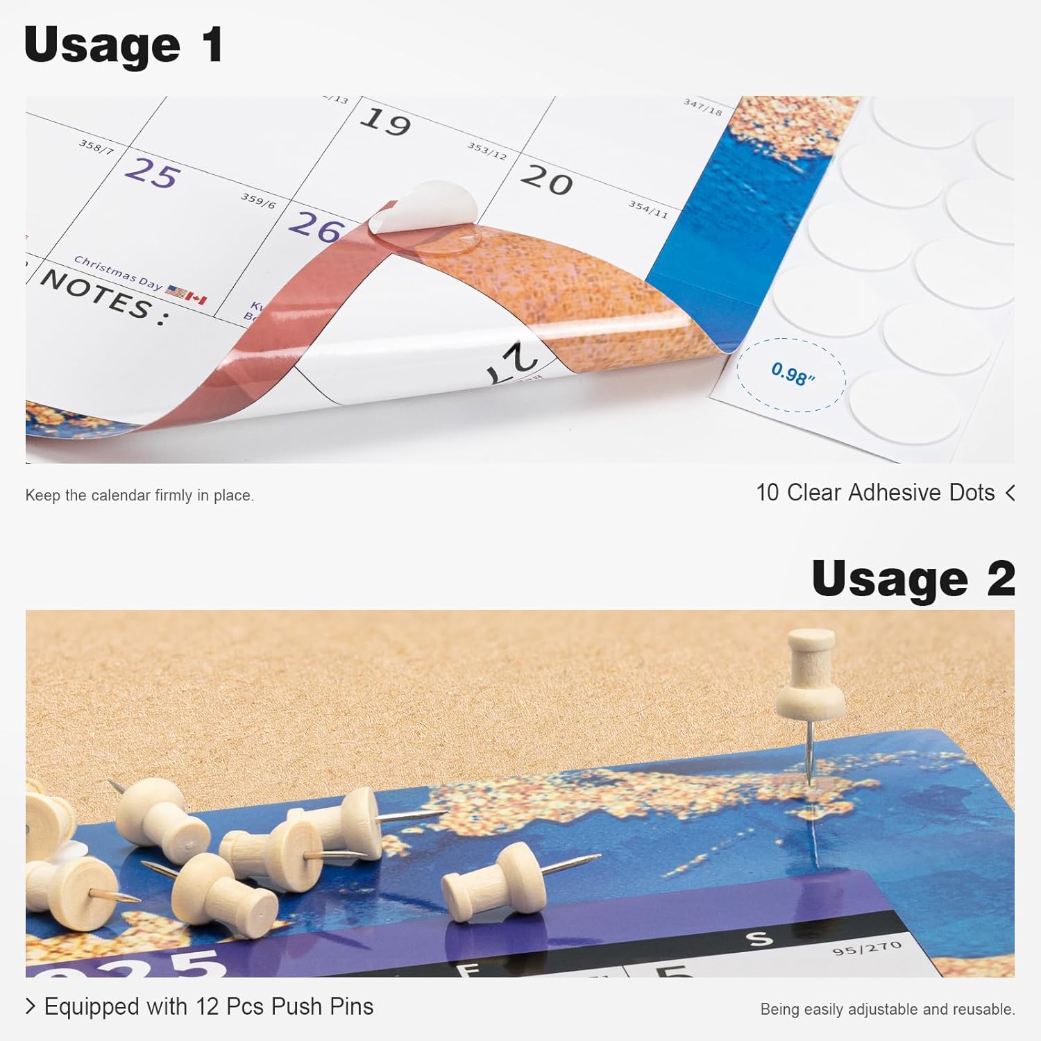• ✨ Laminated Calendar with Dates: Waterproof wall calendar comes with a mini eraser, four dry-erase markers, 12 push pins, and 10 transparent round stickers. 2 yearly calendar planner covers the time range from Jan 2024 to Dec 2026, making it perfect for long-term use.