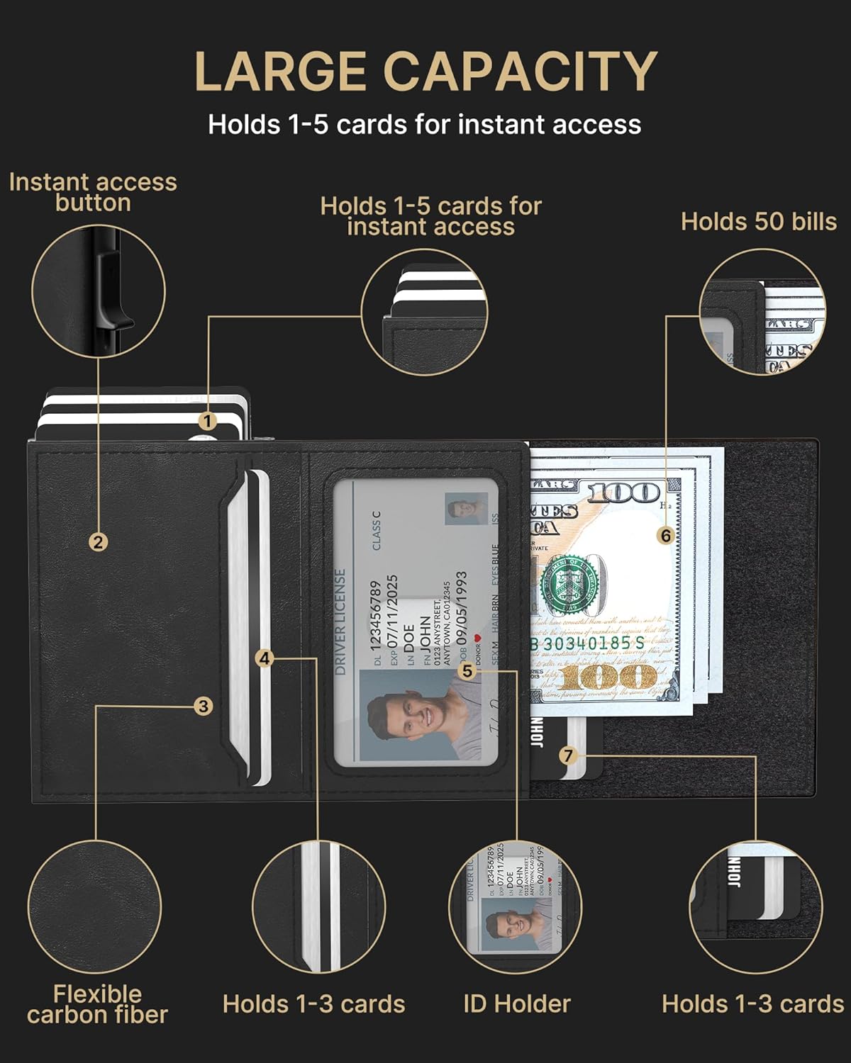 • ๐—˜๐—ณ๐—ณ๐—ถ๐—ฐ๐—ถ๐—ฒ๐—ป๐˜ ๐—–๐—ฎ๐—ฟ๐—ฑ ๐—”๐—ฐ๐—ฐ๐—ฒ๐˜€๐˜€: Designed for speed, this wallet's Smart Pop Up mechanism allows you to instantly view and select your cards.