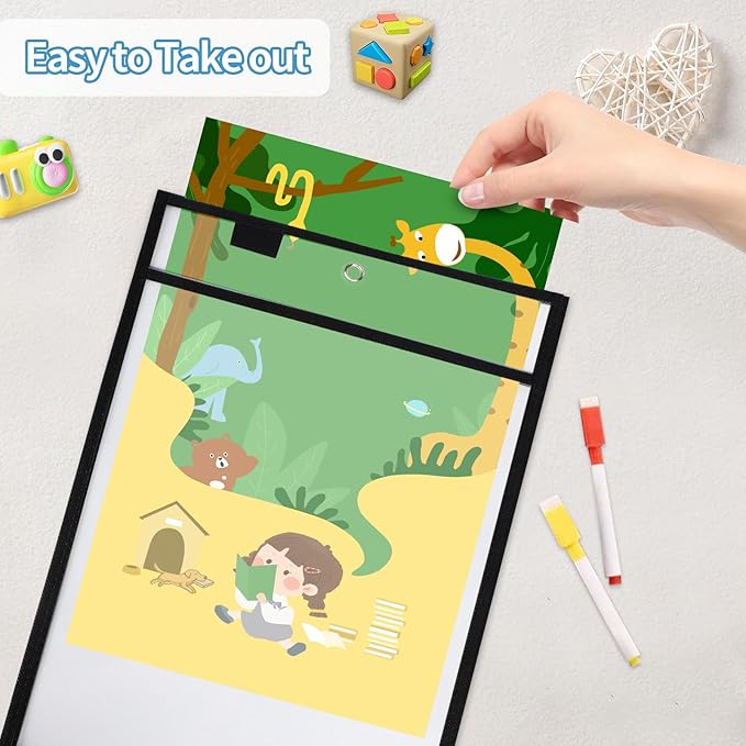 • Premium Material: Black dry erase pockets are reusable, which can withstand lots of student wear and tear.