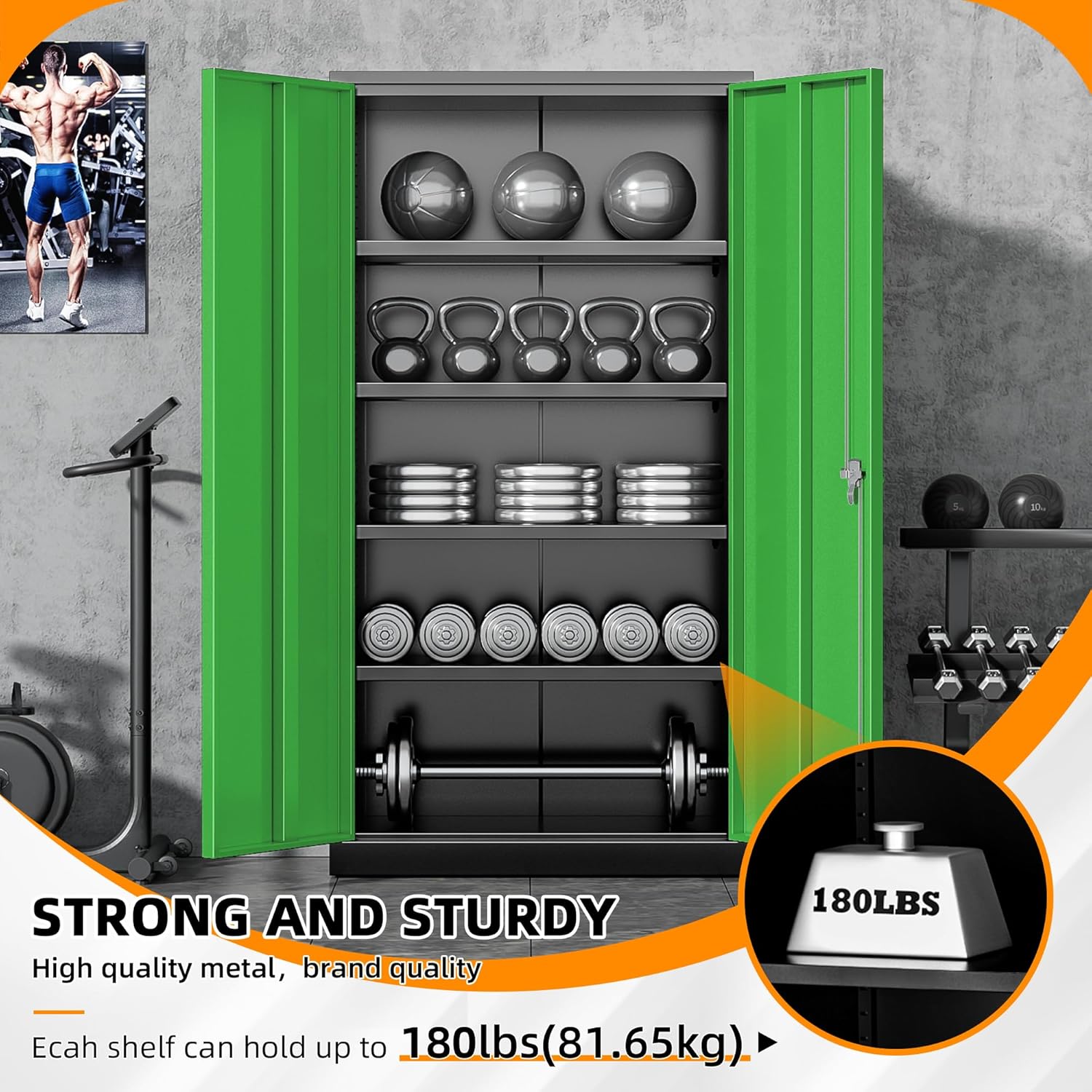 • 『Multi-scene』: Black green metal storage cabinet with locking doors is perfect for storing large quantities of items, this large steel storage cabinet adds extra space to any room and can be used in home office, garage, basement, etc.