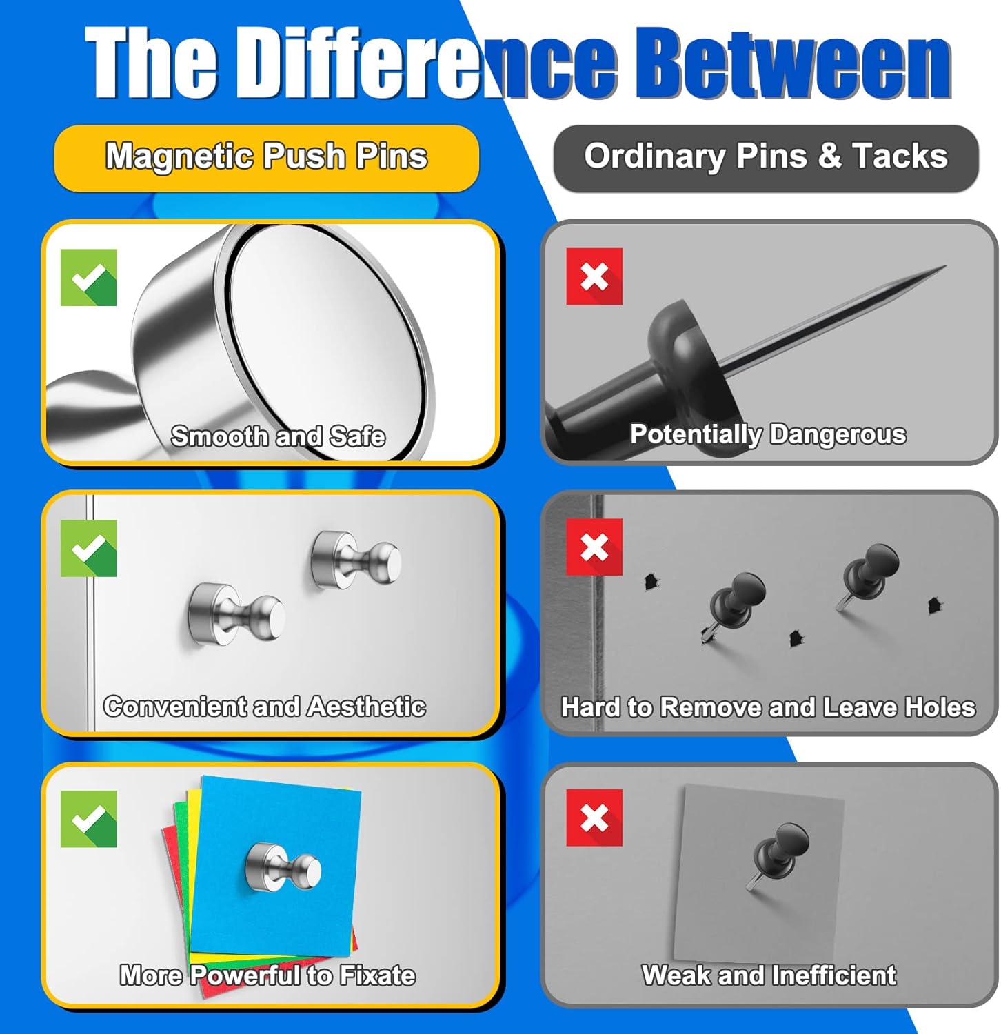 • DURABLE CONSTRUCTION: Crafted from neodymium with triple-layer coating, these fridge magnets are designed to last. Push pins magnets resist corrosion and scratches for longer-lasting performance in daily use