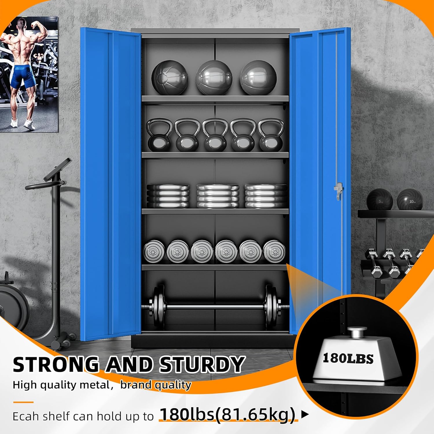 INTERGREAT Storage Cabinet,72”H Garage Steel Locking Cabinets with Doors and 4 Adjustable Shelves, Tall Lockable File Tool Cabinet for Home Office, Metal Classroom Cabinets Basement, Black-Blue