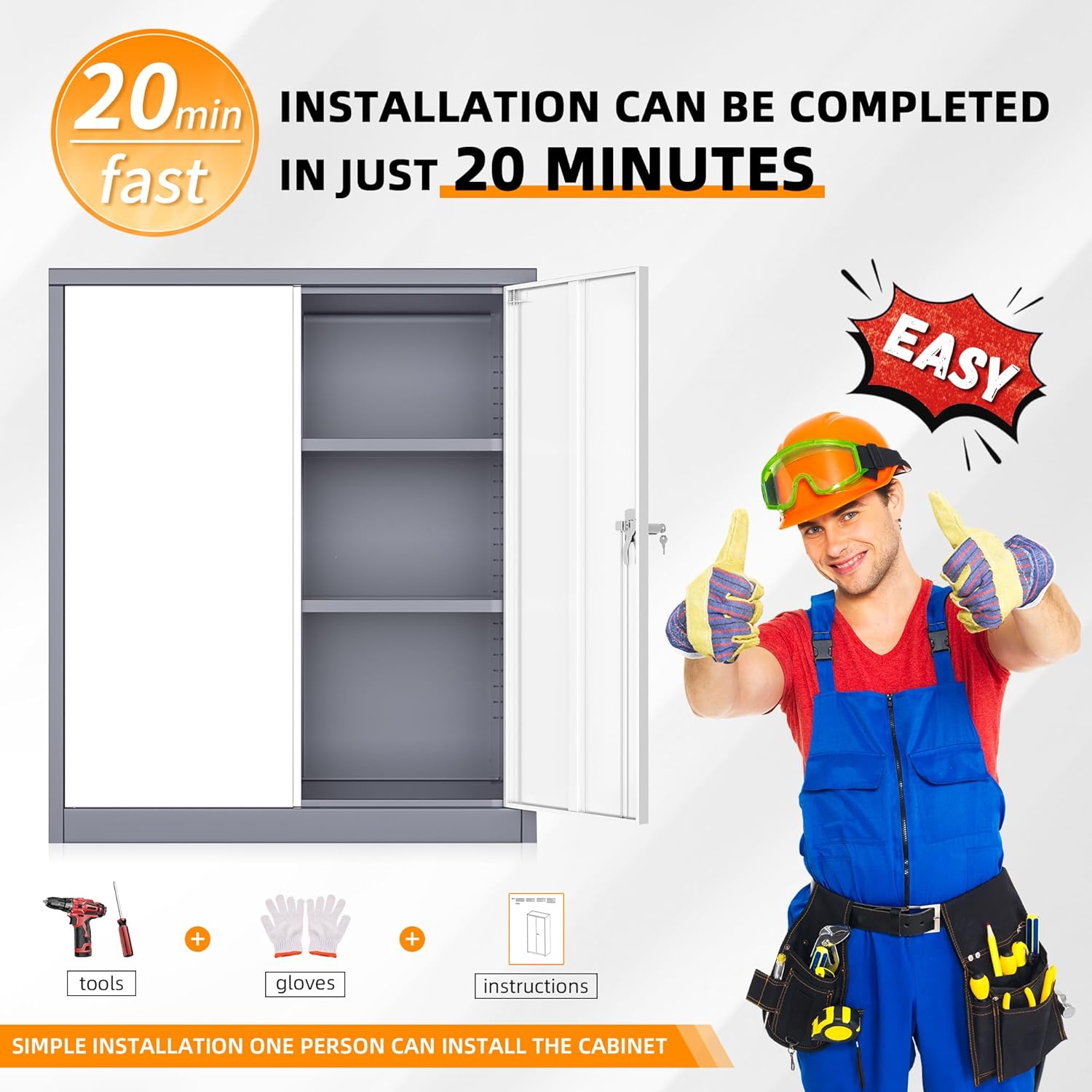 • 『EASY TO ASSEMBLING』42 inch×36 inch×18 inch (H x W x D). 2 wing doors with a 180°opening angle. The garage storage cabinets is knock-down structure. The package comes with detailed assembly instructions, easy to assemble.