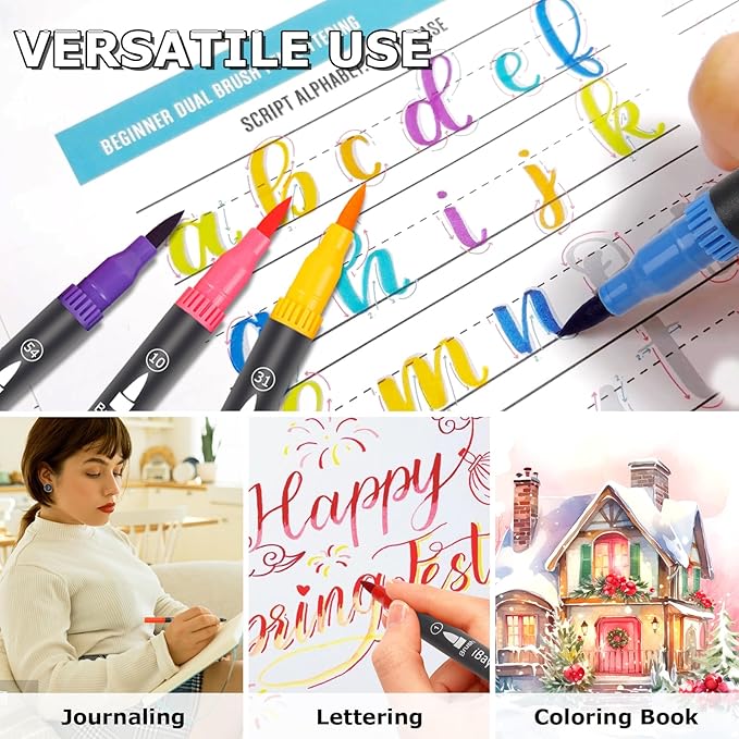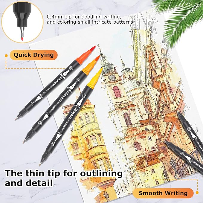 • Dual brush tip markers allow for both fineline detail work and broad strokes, great for journaling, calligraphy, drawing, and more.
