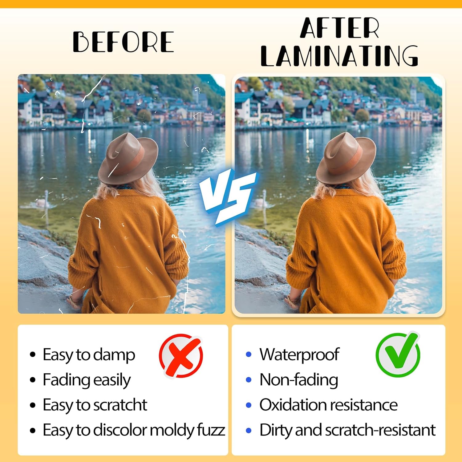 • Application:Perfect for protecting certificates,signs,photos,awards,calendars,kids artworks. It can seal and protect your documents it can be used in classroom, home and office. Compatible with all thermal laminator machine brands. Thermal laminator needed, not self-adhesive