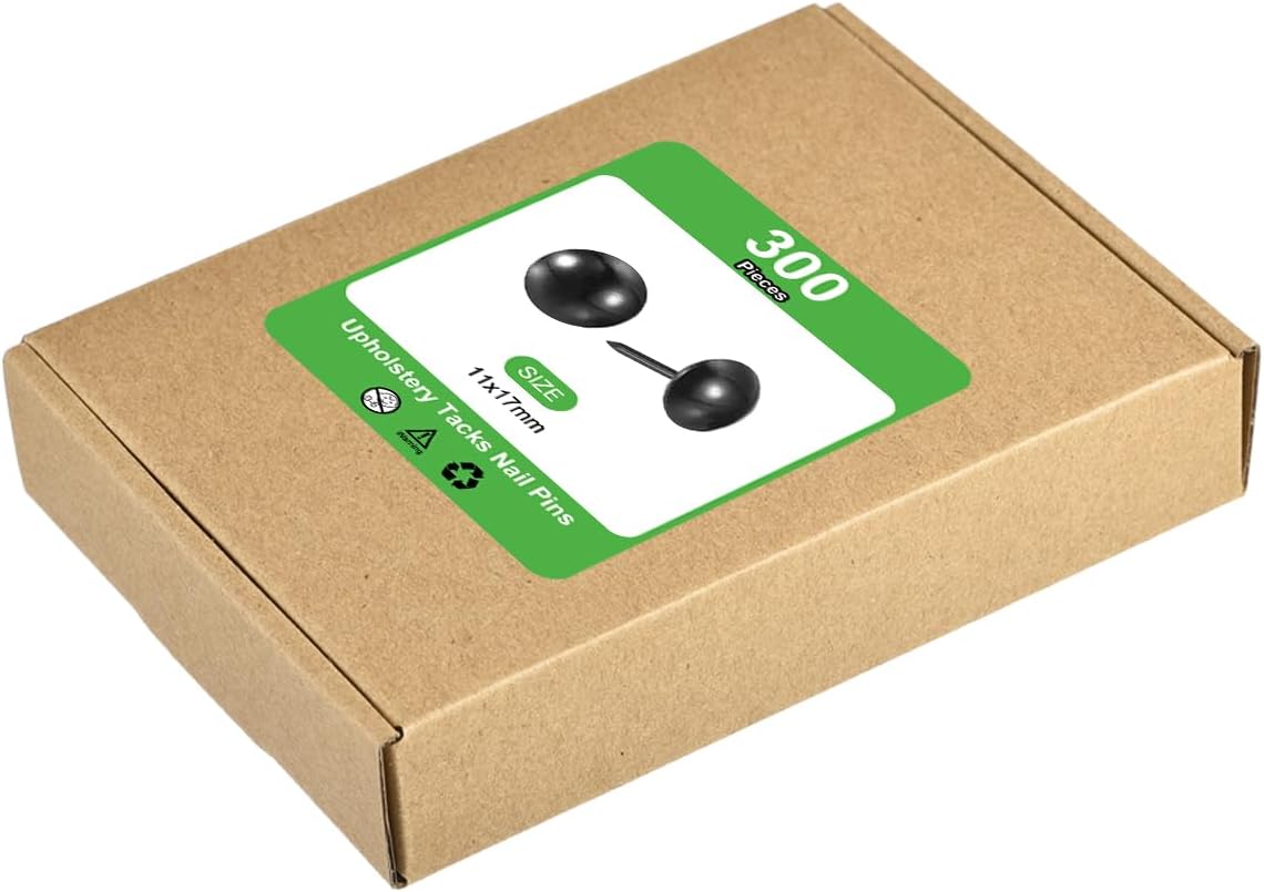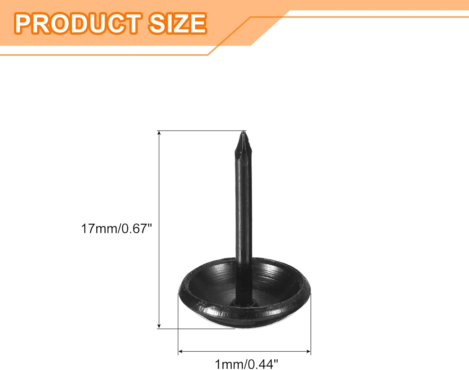 • Specifications: Material: Carbon steel; Color: Black; Diameter of nails head: 11mm/0.44inch; Shank length: 17mm/0.67inch; Package Content: 100Pcs x Upholstery Tacks Nail Pins
