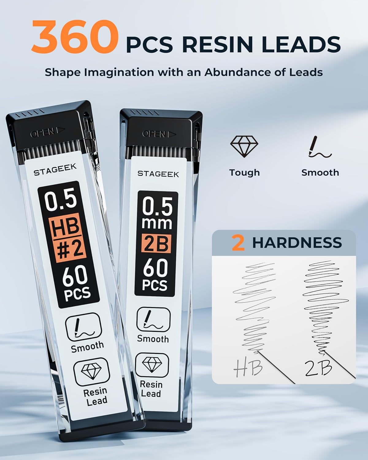 • HB & 2B Hardness: The HB 0.5mm lead refills are perfect for everyday writing, offering balanced hardness. The 2B lead is ideal for fine details and sketching. These leads are durable, break-resistant, and produce minimal dust, ensuring smooth, effortless writing.