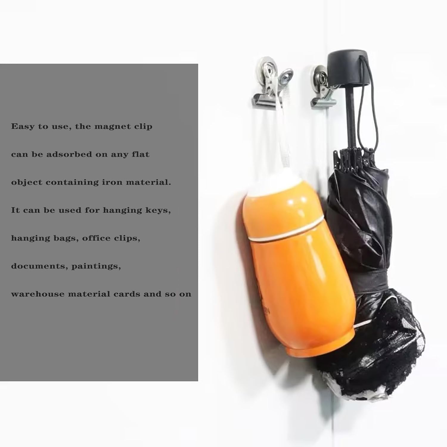 • Material : Our Strong Magnetic Clips are made of strong steel, with smooth powder coat finish and nickel plated handles, durable and rust-resistant.