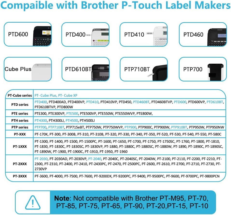 • The tz tape 18mm 0.7 laminated white compatible for Brother p-touch label maker: PTD400 PTD600 PTD400AD PTD400VP PT-D450 PT-D600VP PT-P700 PT-P710BT PT-P750W PT-E300 PT-E500 PT-E550W PT-H500LI PT-2730 PT2430PC PT-1880 PT-1830 PT-1890