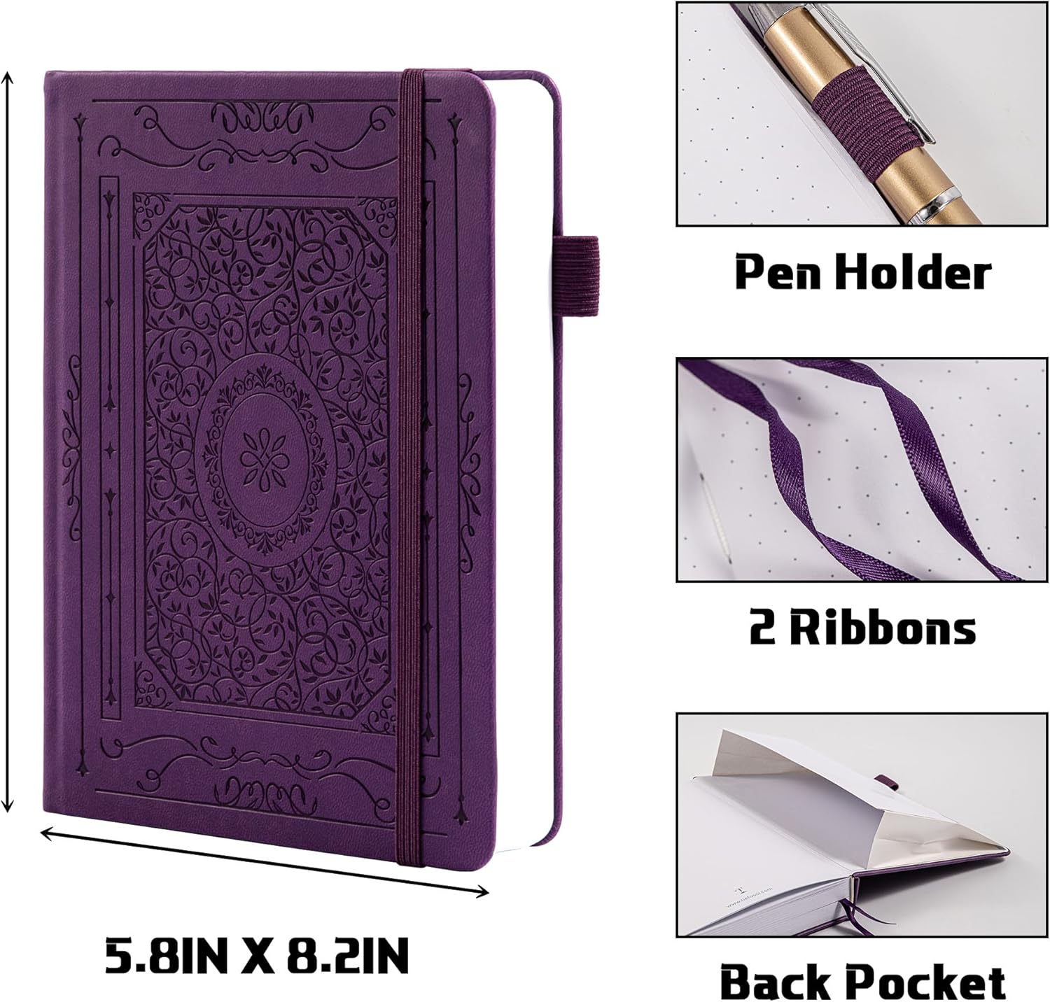 • Unique Cover Designs: This dot matrix notebook features a premium faux leather cover. The elegant embossed and foil-stamped cover pattern delivers a beautiful look and comfortable feel, available in 5 classic colors. The rounded edges and hard leather cover all protect the journal better, and with the sturdy binding, it brings you a high-quality writing experience.