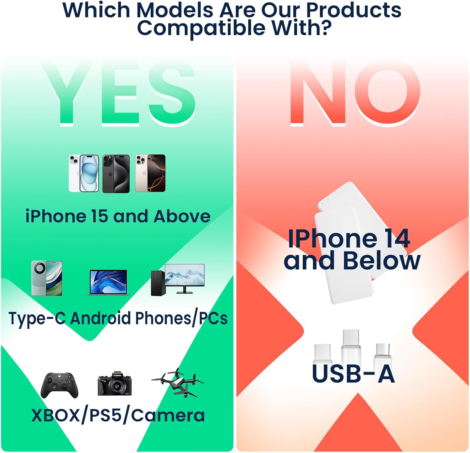 • Compatible Devices : Compatible with iPhone 15/16 Series and other USB Type-C devices