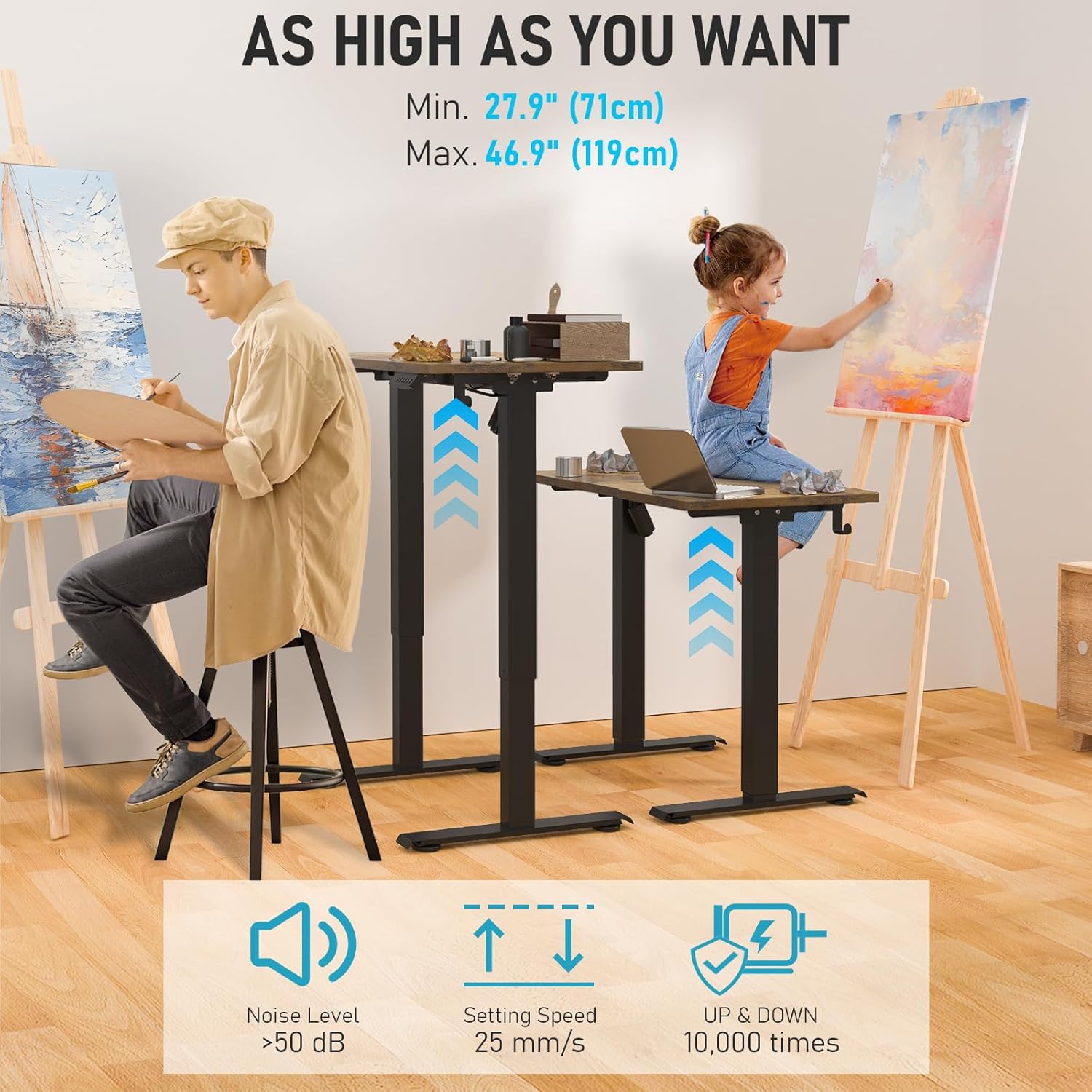 • Smooth Height Adjustment: Freely select electric standing desk height, from 27" to 46.5". Save your favorite three settings and smoothly switch between them