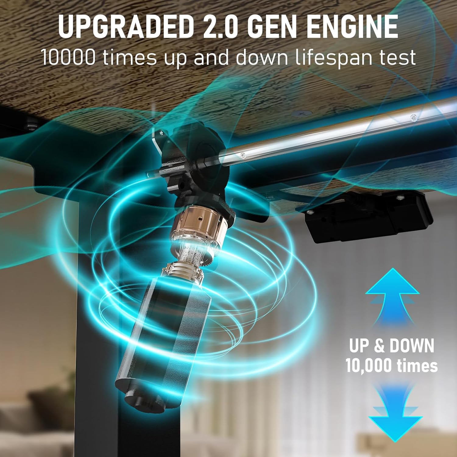 • Outstanding Stability: This electric standing desk has a sturdy solid steel frame with aerospace-grade lifting column connectors (still stable & secure after testing 50,000 times). It's a firm foundation for work, even at full height