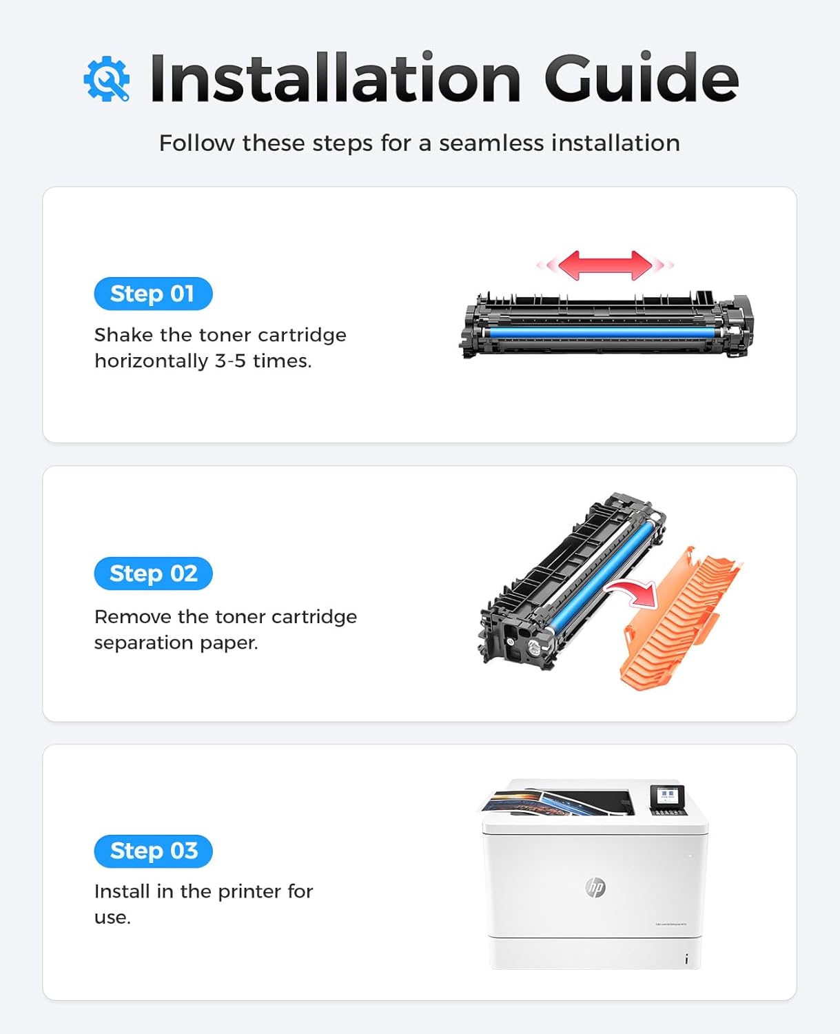• The latest chip version: The JCTONER toner cartridges are equipped with the latest version of built-in chips, ensuring perfect compatibility between each toner cartridge and the printer. This enables you to print efficiently while maintaining stability and reliability, making installation convenient without the need for manual adjustments. All JCTONER toner cartridges have undergone strict quality testing and have obtained ISO9001 certification. High-quality toner cartridges can meet the demand for high printing volume. The fine toner ensures clear and stain-free printing results and extends the lifespan of the printer. You can purchase with confidence.