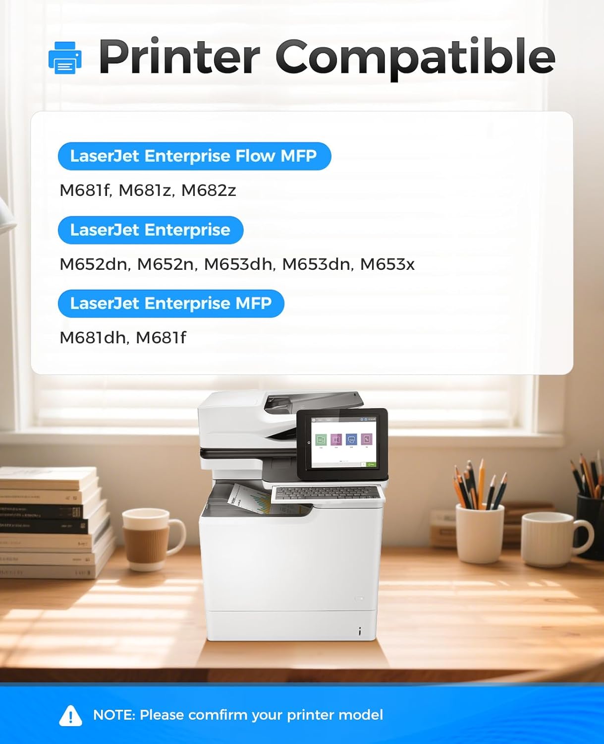 • Compatible Printers: Compatible with HP Color LaserJet Enterprise Flow MFP M681f M681z M682z; Color LaserJet Enterprise M652dn M652n M653dh M653dn M653x; Color LaserJet Enterprise MFP M681dh M681f Printer.