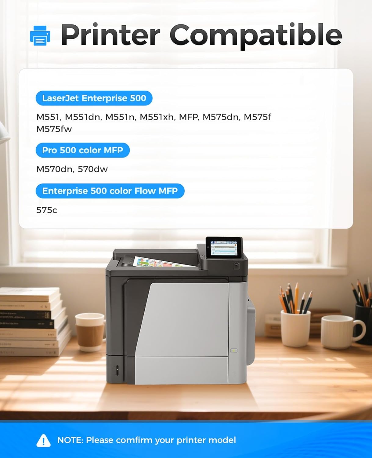 • Compatible Printers: Compatible with HP Color LaserJet Enterprise 500 color M551 M551dn M551n M551xh MFP M575dn M575f M575fw, Pro 500 color MFP M570dn 570dw, Enterprise 500 color Flow MFP 575c Series Printer.