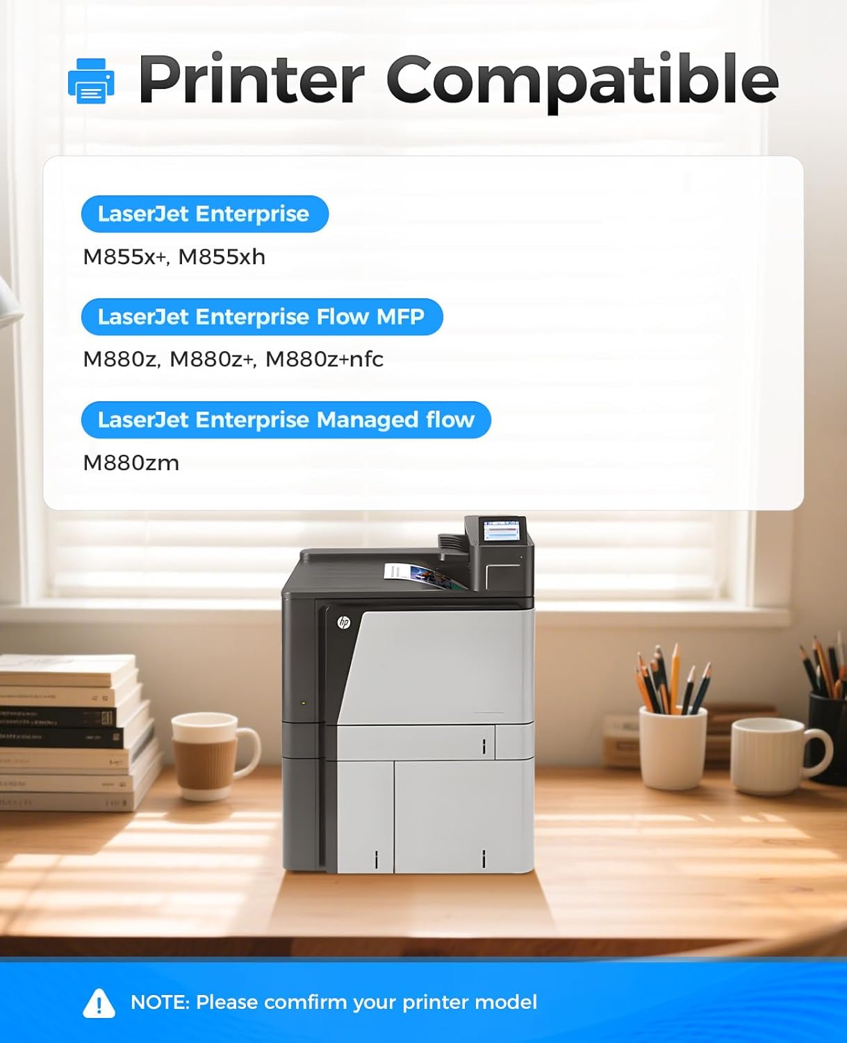 • Compatible Devices : Compatible for HP Color LaserJet Enterprise M855x+/M855xh/M855dh/HP Color LaserJet Enterprise Flow MFP M880z, M880z+ Series Printer. Compatible for HP Color LaserJet Enterprise M855x+/M855xh/M855dh/HP Color LaserJet Enterprise Flow MFP M880z, M880z+ Series Printer.