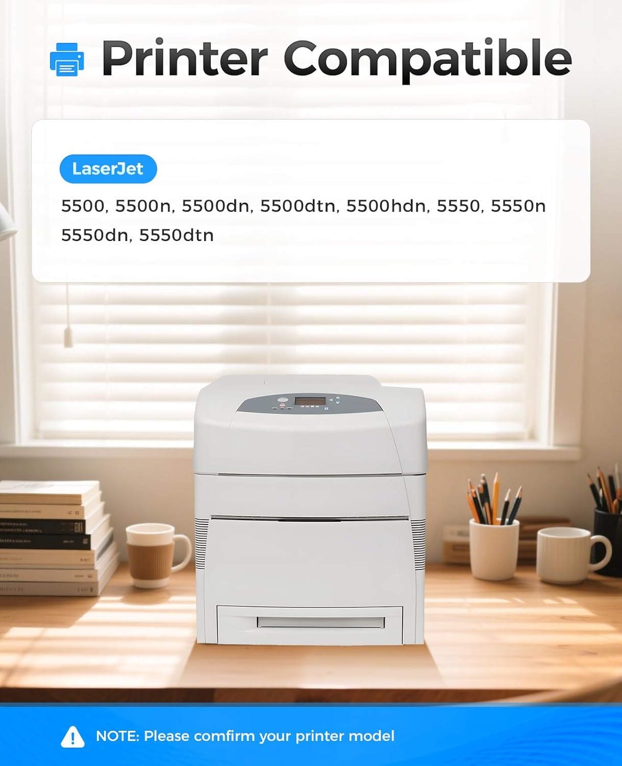 • Compatible Printers: Compatible with HP Color LaserJet 5500 5500n 5500dn 5500dtn 5500hdn 5550 5550n 5550dn 5550dtn Series Printer.
