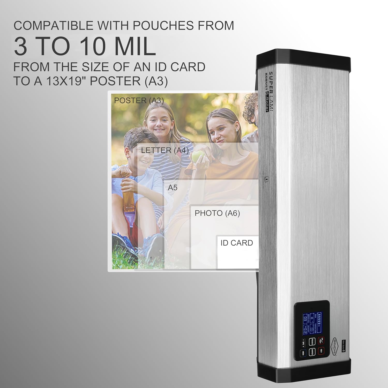 SINCHI Robust 6-Roller Laminator Machine with LCD Display, 3-10 Mil, Heavy Duty, 13-inch Thermal Laminating Machine for Commercial Use, 1.5-Minute Warm-up, 90 Inches/Minute, 105 Settings & 99 Memories
